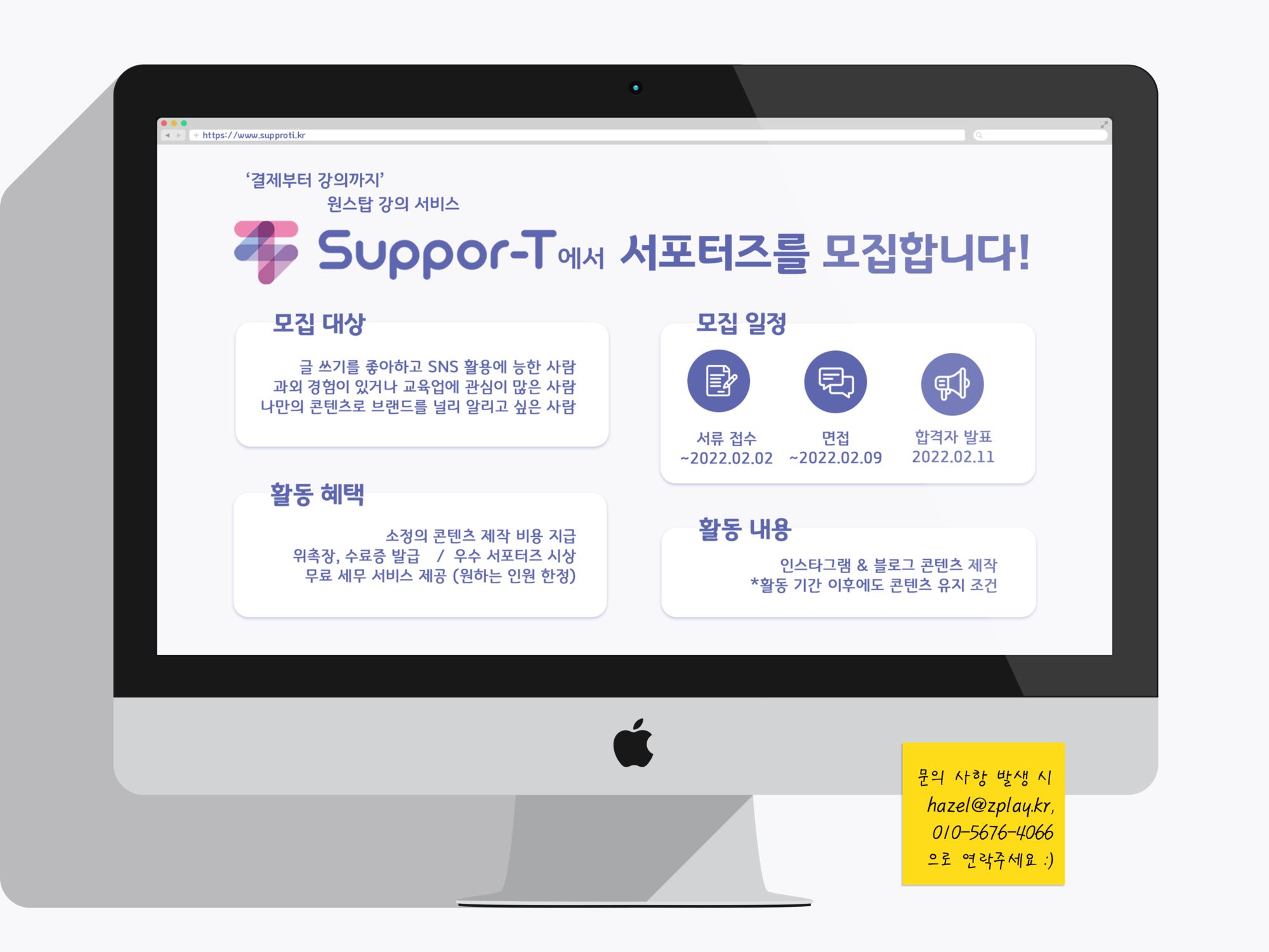 ‘온라인 강의부터, 학생관리, 결제, 세무까지’ 강의를 위한 모든 것이 가능한 원스탑 서비스 Suppor-T에서 서포터즈를 모집합니다