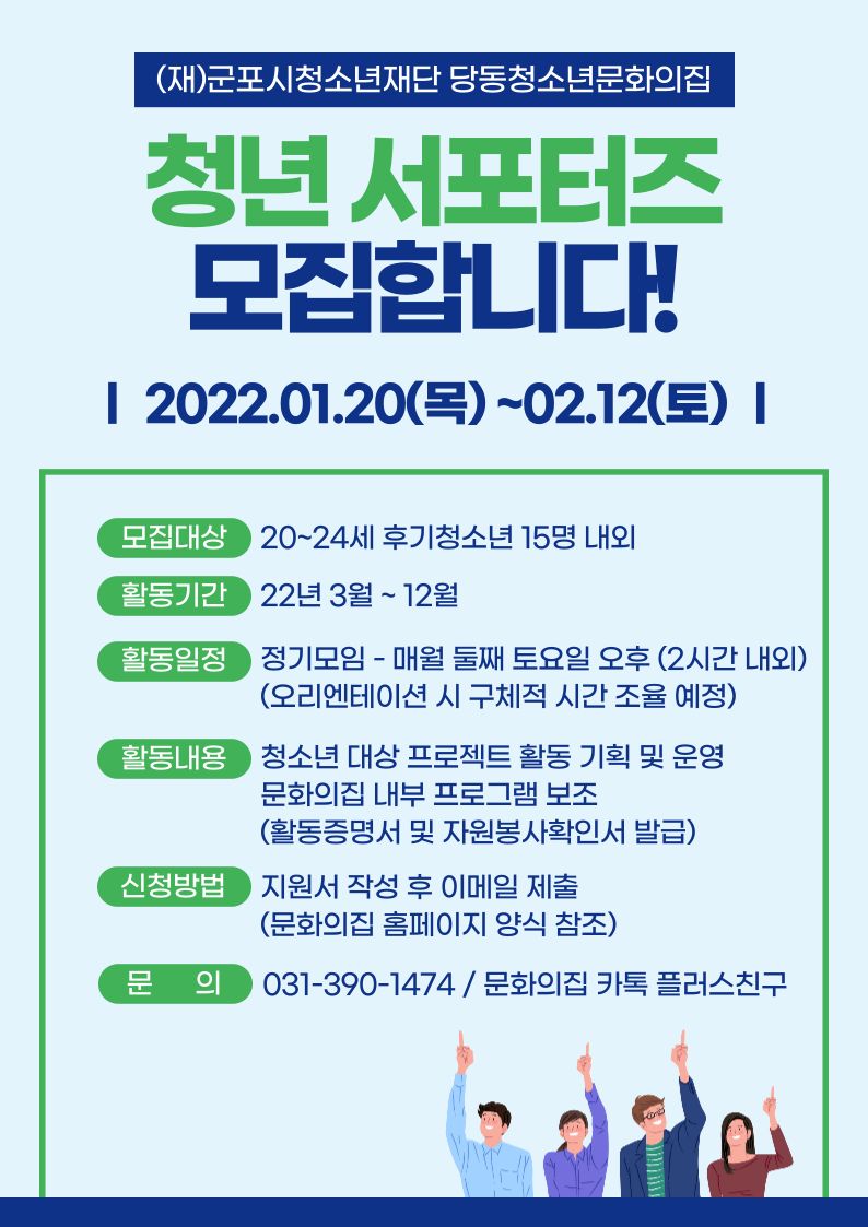 2022년 당동청소년문화의집에서 함께 활동할 청년서포터즈를 모집합니다!