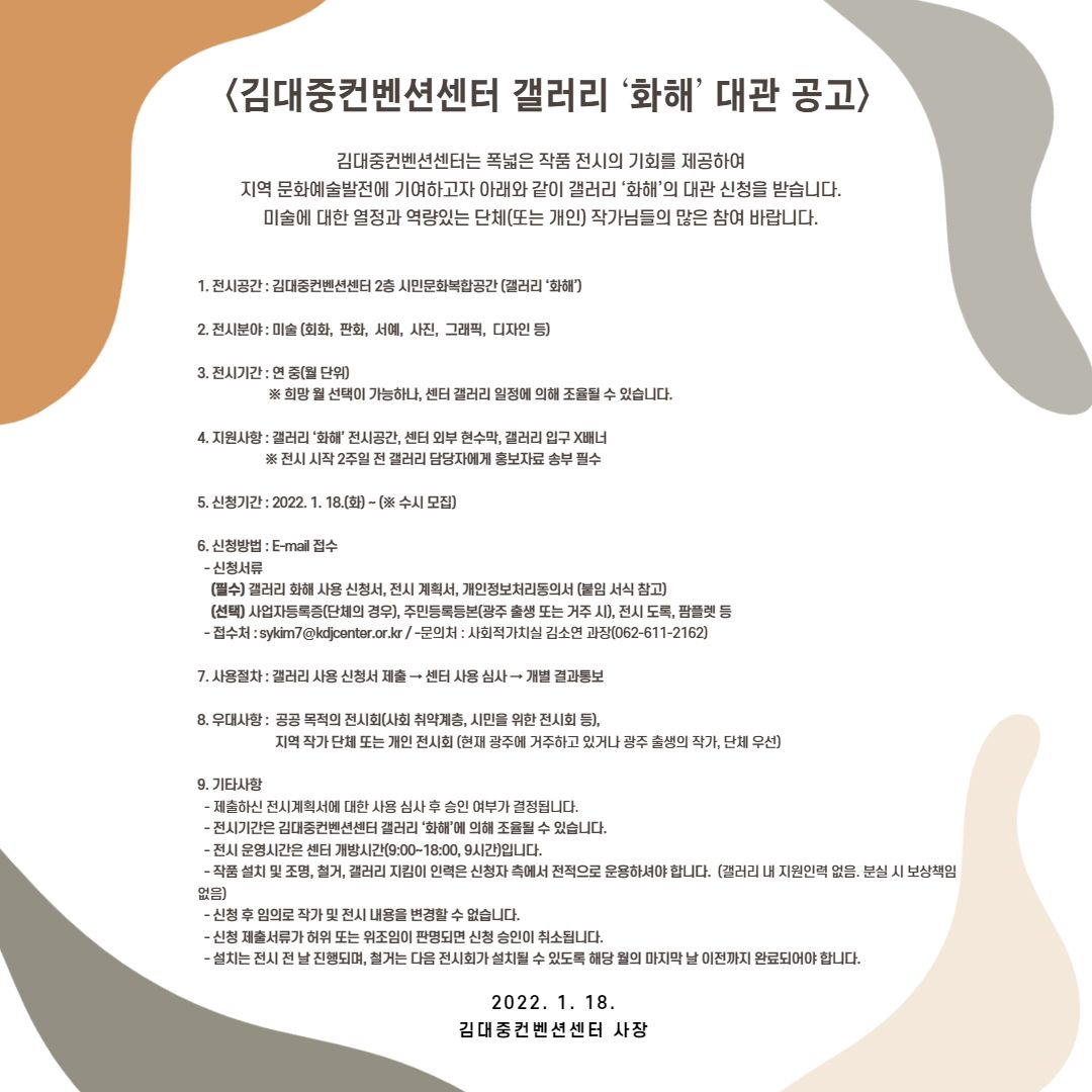 김대중컨벤션센터 갤러리 '화해' 대관 공고