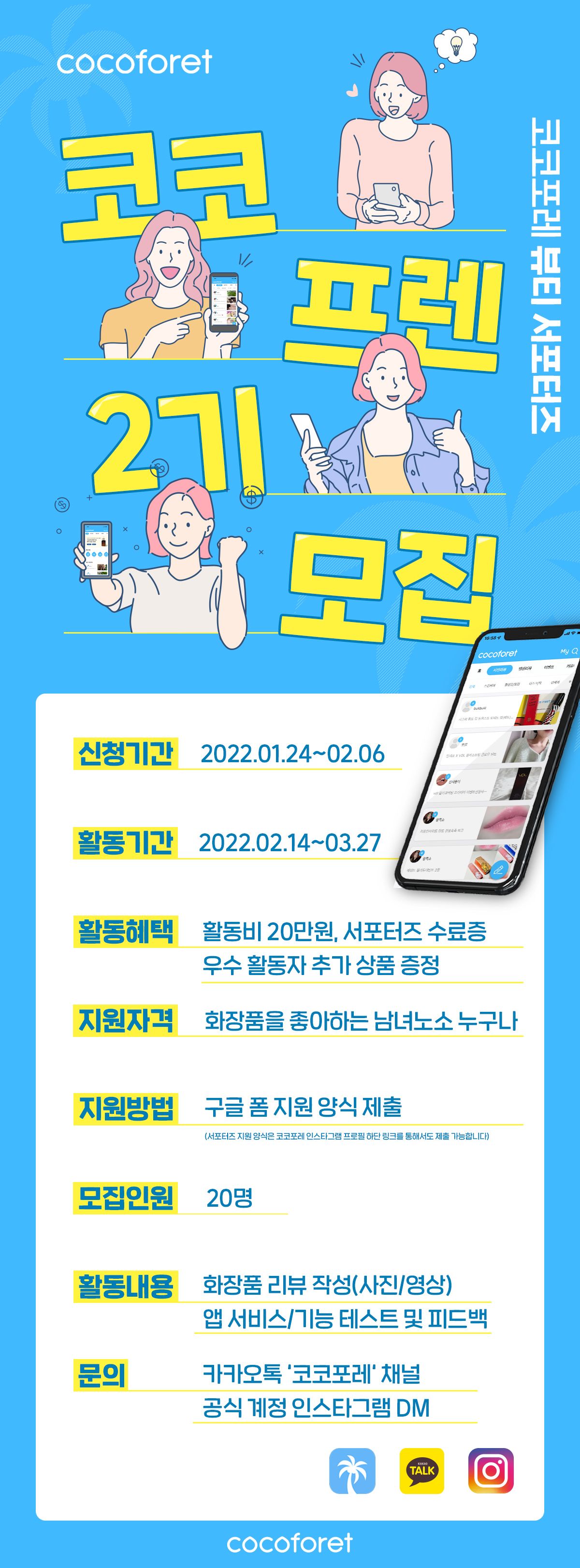 문의 : 카카오톡 ‘코코포레’ 채널 및 공식 계정 인스타그램 DM