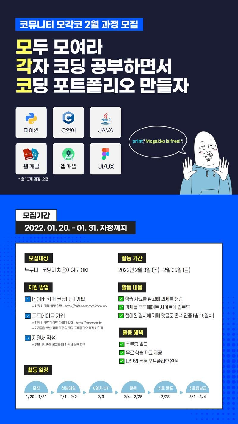 - 모집 : 22. 1. 20. (목) ~ 22. 1. 31. (월) 자정