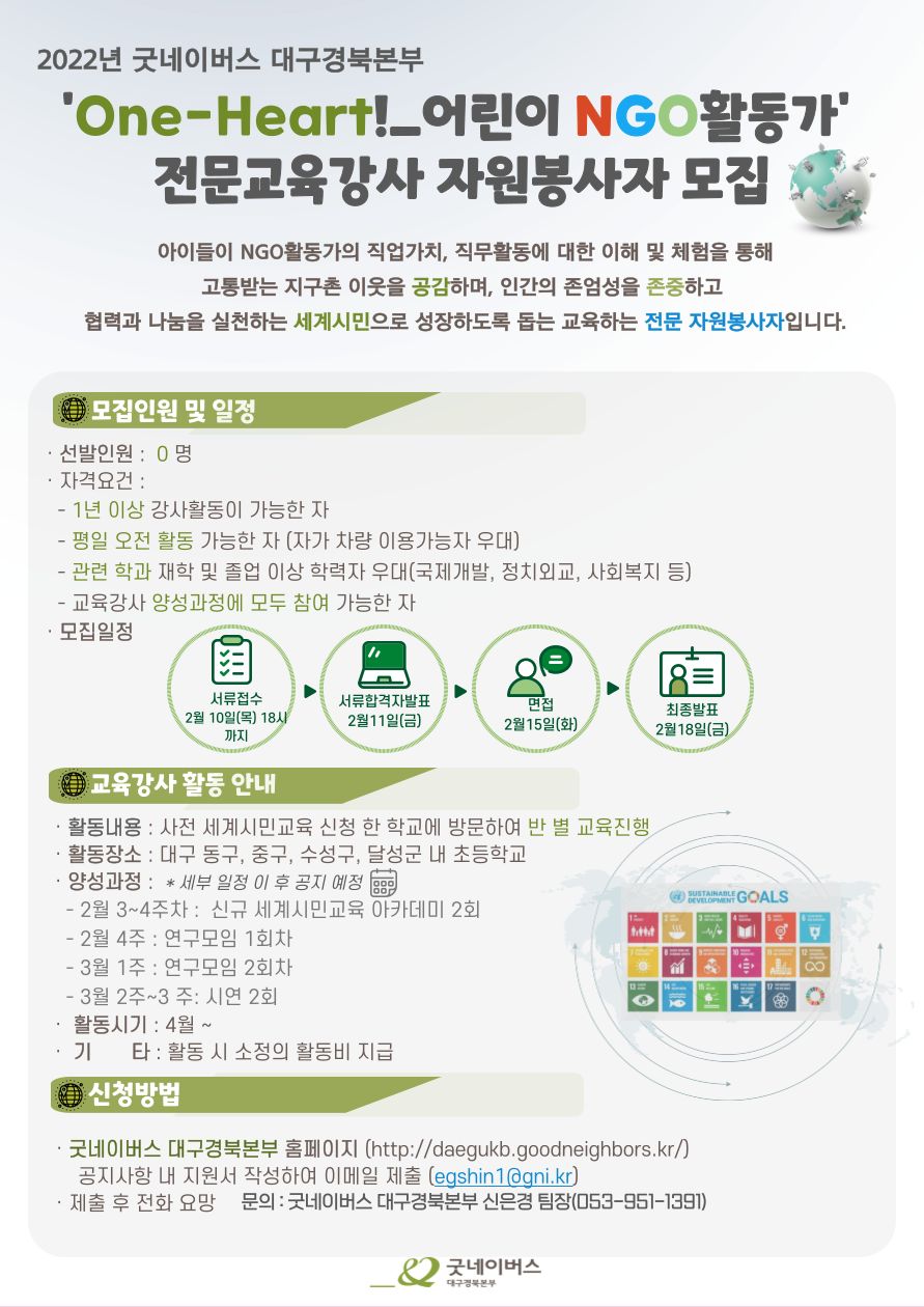 가. 사 업 명 : 굿네이버스 대구경북본부 원하트 전문교육강사 모집