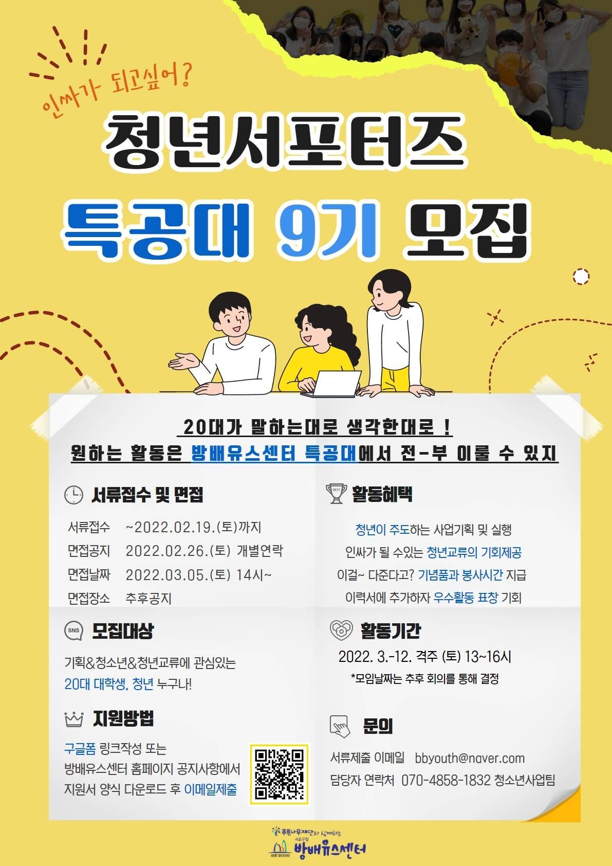 [방배유스센터 청년서포터즈 특공대 9기 모집]