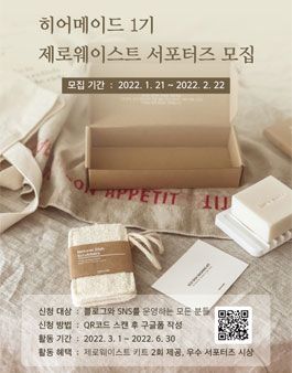 히어메이드 1기 제로웨이스트 SNS / 블로그 온라인 서포터즈 모집
