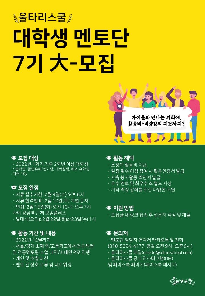 2022 울타리스쿨 대학생멘토단 7기 모집