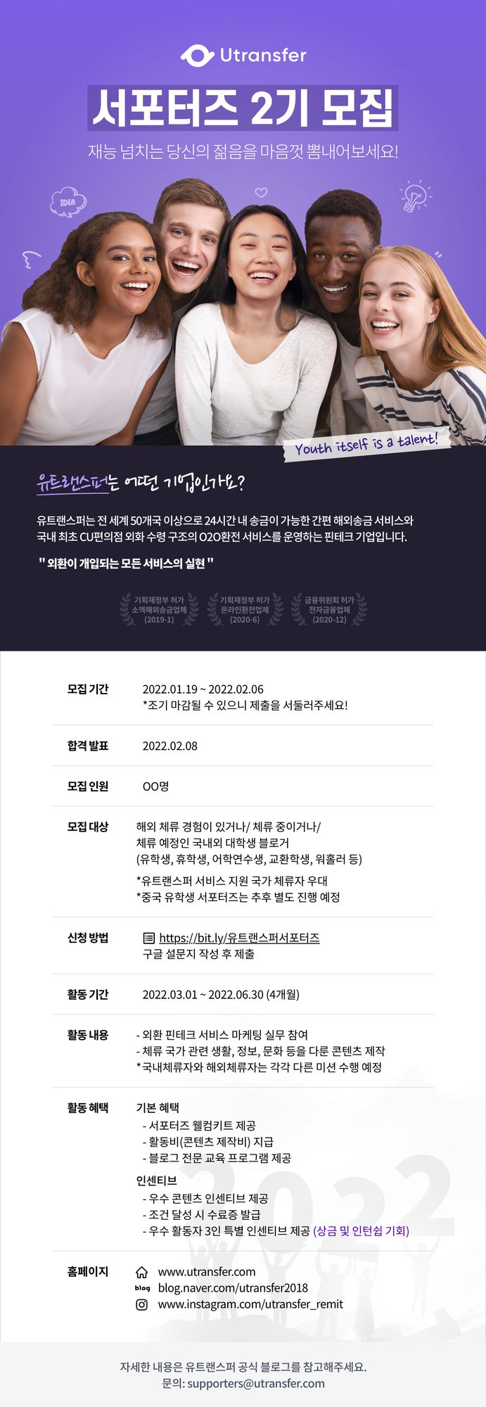 【유트랜스퍼 서포터즈 2기 대모집】