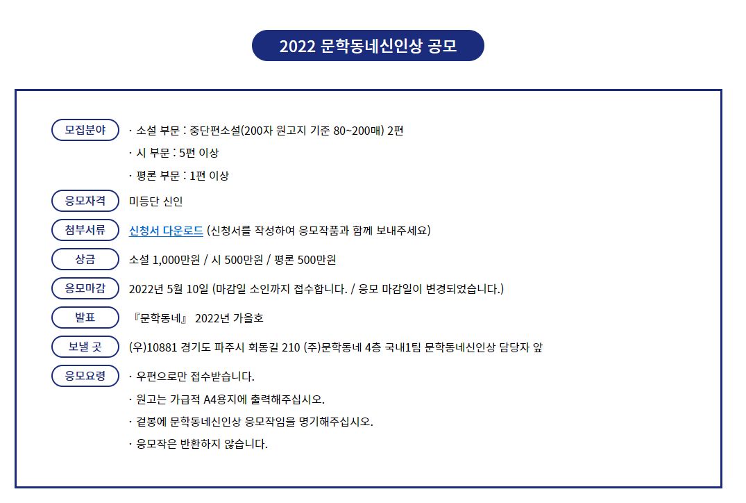 2022 문학동네신인상 공모