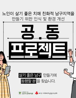 주민들의 힘으로 치매와 관련된 부정적인 인식을 개선하고 치매노인을 비롯한 모든 사람이 살기 편한 '남구'를 만들고 싶은 “동행단(2기)”를 모집합니다.