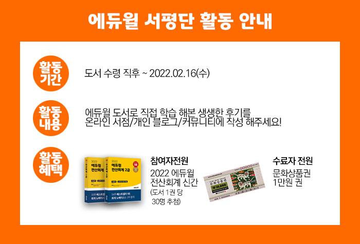 2022 에듀윌 전산회계 1,2급 서평단 이벤트(~01/26, 수)