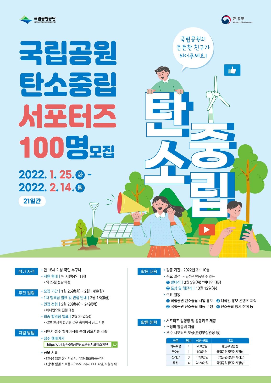 - 접수 웹페이지: https://bit.ly/국립공원탄소중립서포터즈지원