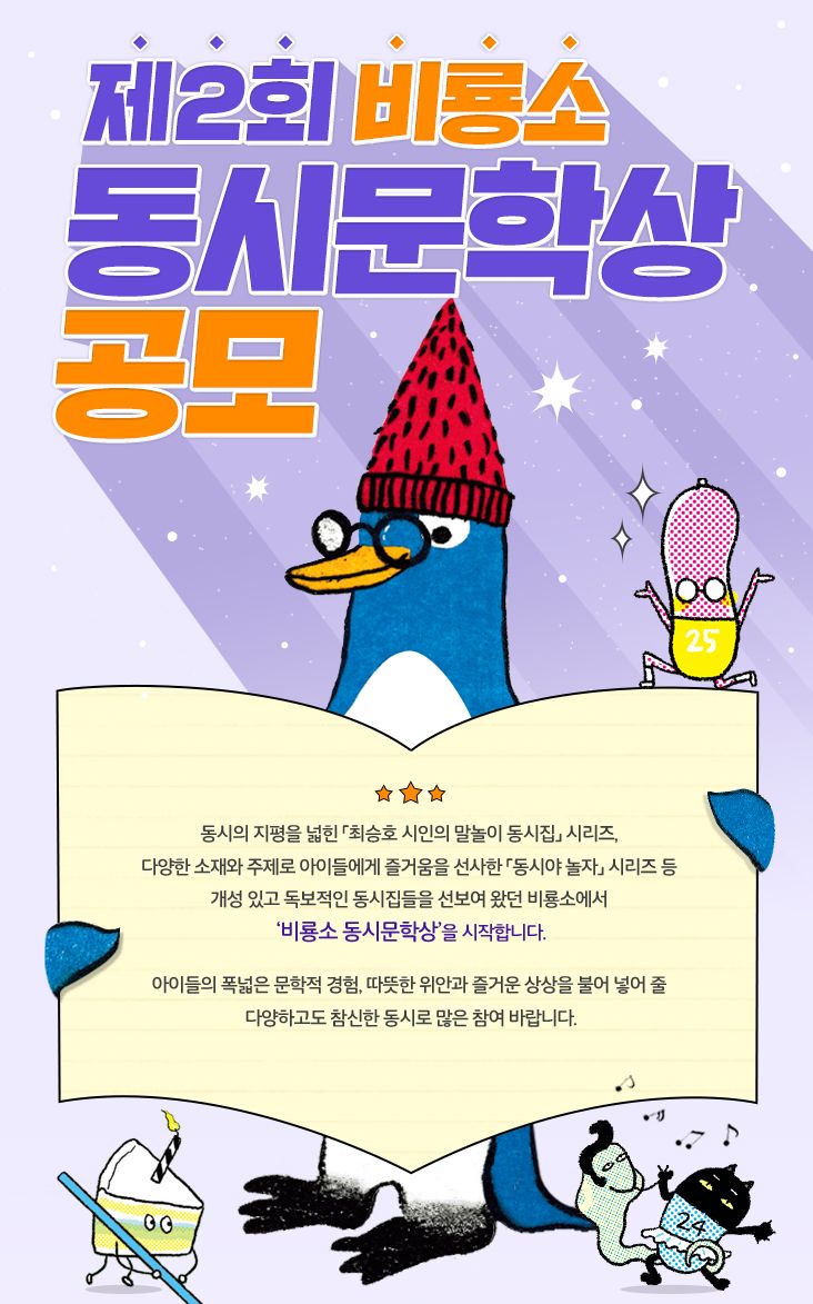 - 겉봉투에 ’제2회 비룡소 동시 문학상‘을 반드시 명기해 주세요.