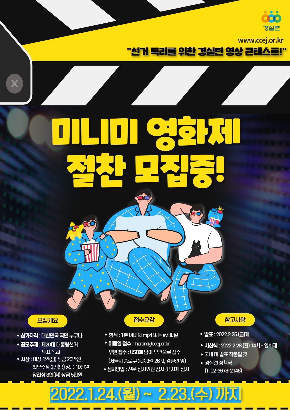 경실련은 제20대 대선을 앞두고 투표를 독려하기 위해 「미니미 영화제」 영상공모전을 개최합니다!!