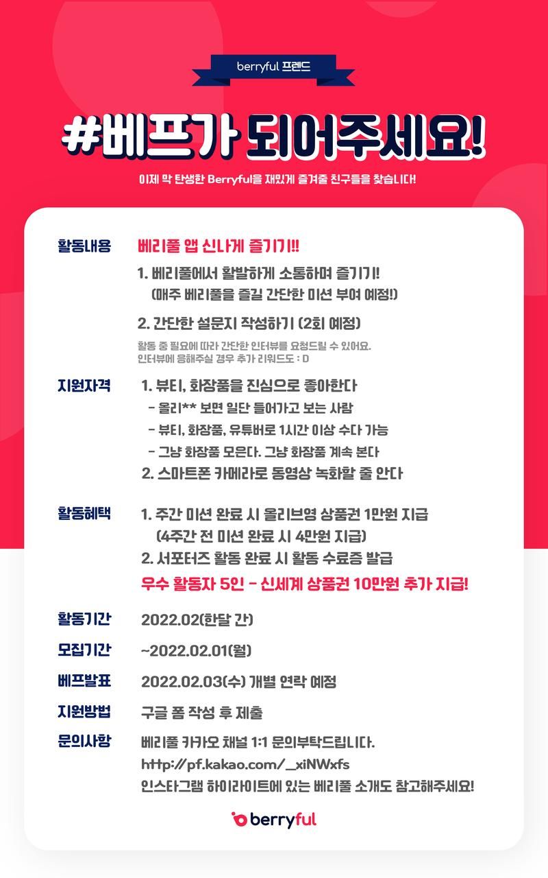 베리풀에게 다양한 뷰티 관점과 의견을 전해줄 여러분을 기다릴게요오-😎
