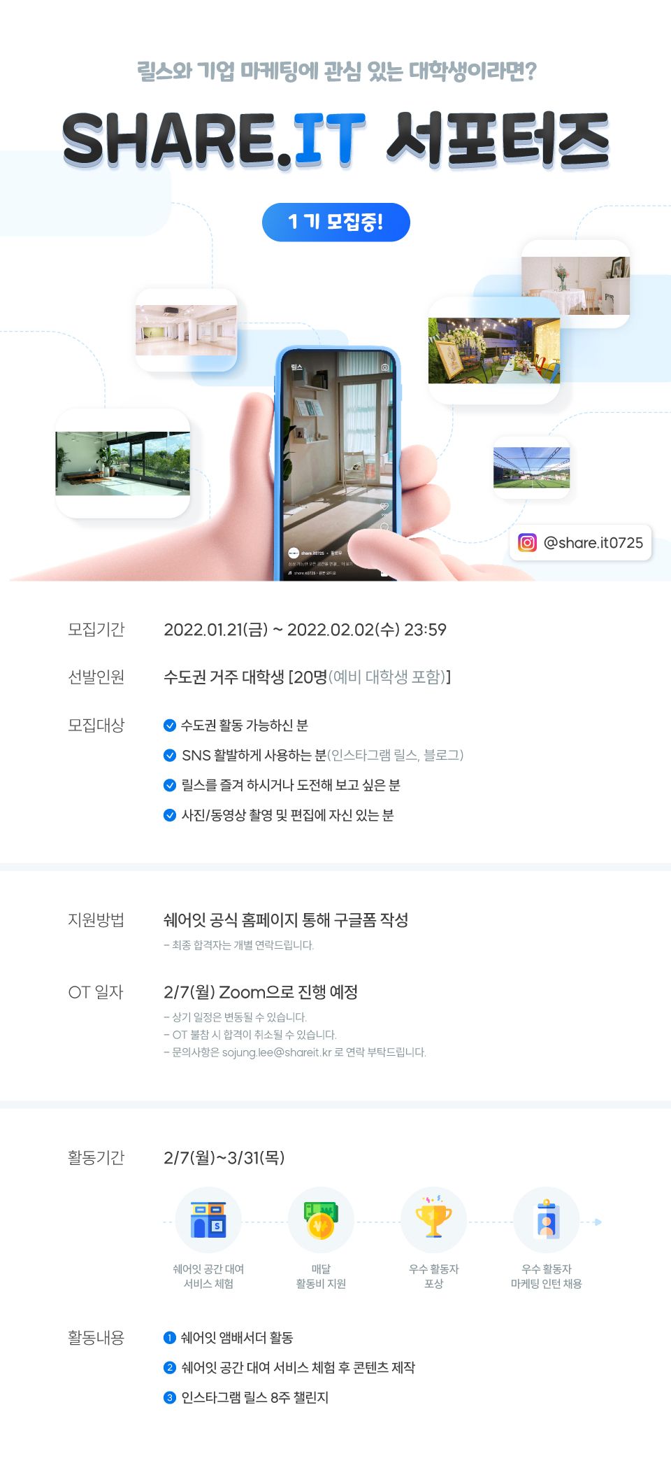 ▶ 쉐어잇 서포터즈 1기 지원하기: https://forms.gle/HPQQn439QkcbLE7PA