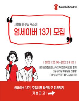세이브더칠드런 영세이버(전북) 13기 모집