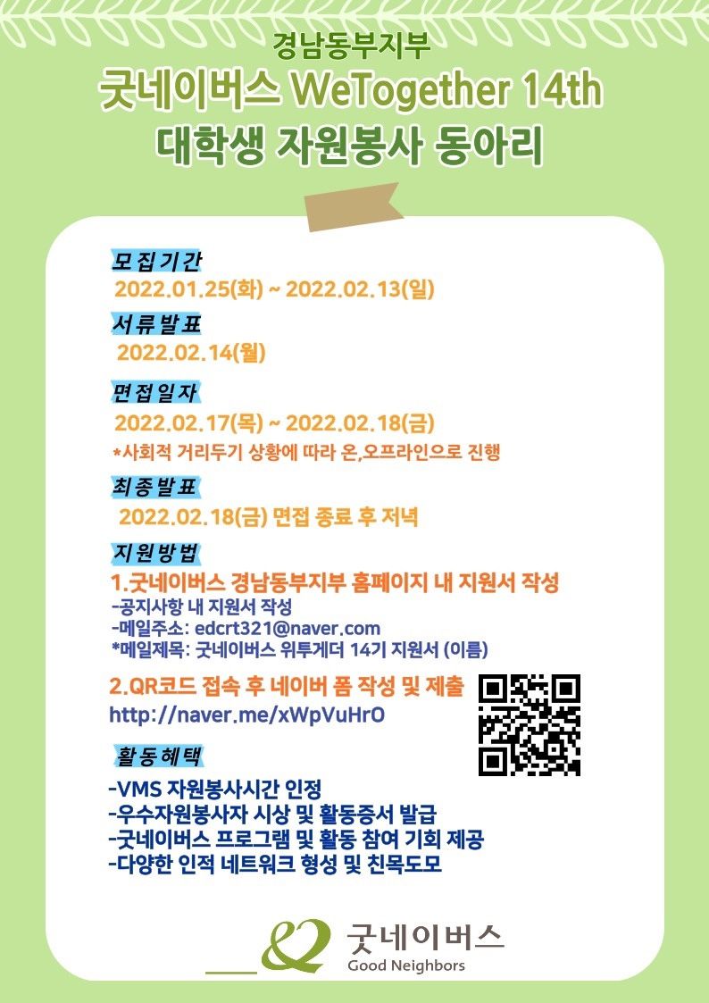 굿네이버스 경남동부지부] NGO 봉사단 위투게더 14기 모집