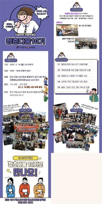 ○ 신청방법: 연수구청소년수련관 홈페이지 → 신청서양식 다운 및 작성 → 이메일 접수(pot0924@naver.com)