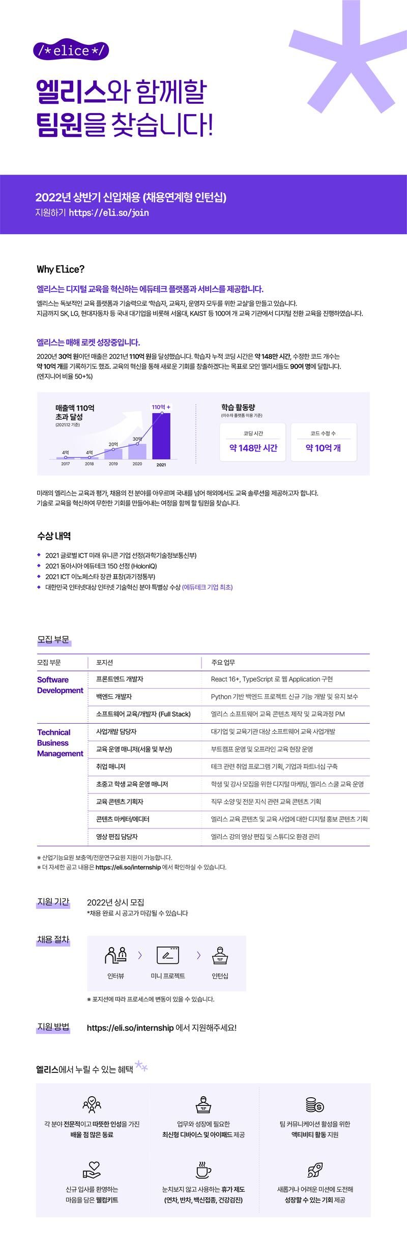 ※자세한 공고 내용은 https://eli.so/internship 에서 확인하실 수 있습니다.