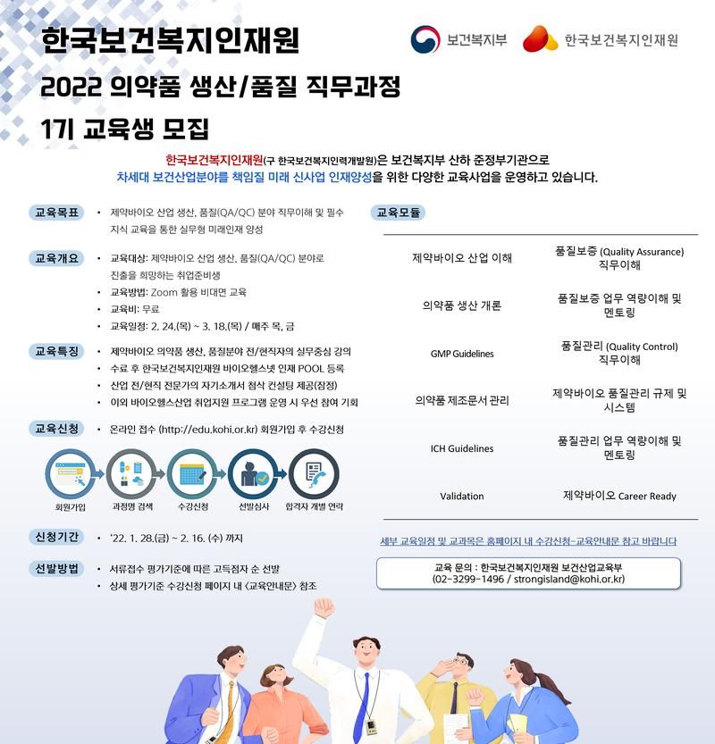 제약/바이오산업 생산/품질 직무로 진출을 희망하는 취업준비생을 대상으로 직무교육과정(비대면)을 진행하오니,