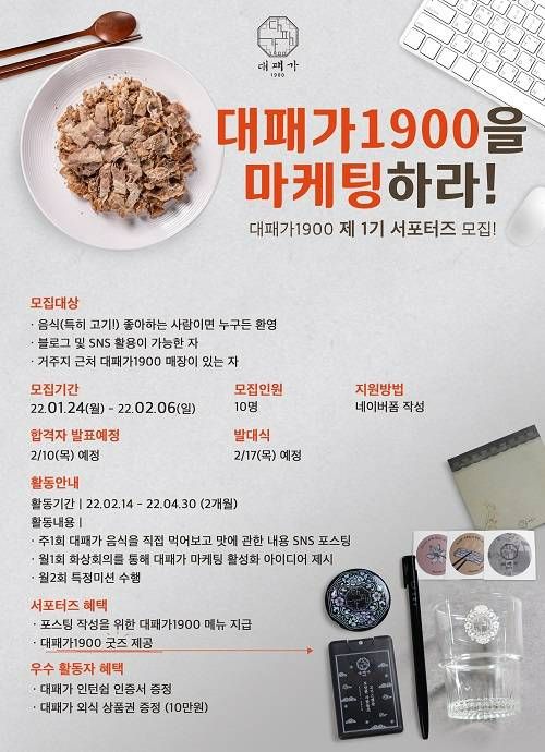 대패가의 매력을 더욱 널리 알려줄 📢서포터즈📢를 모집합니다.