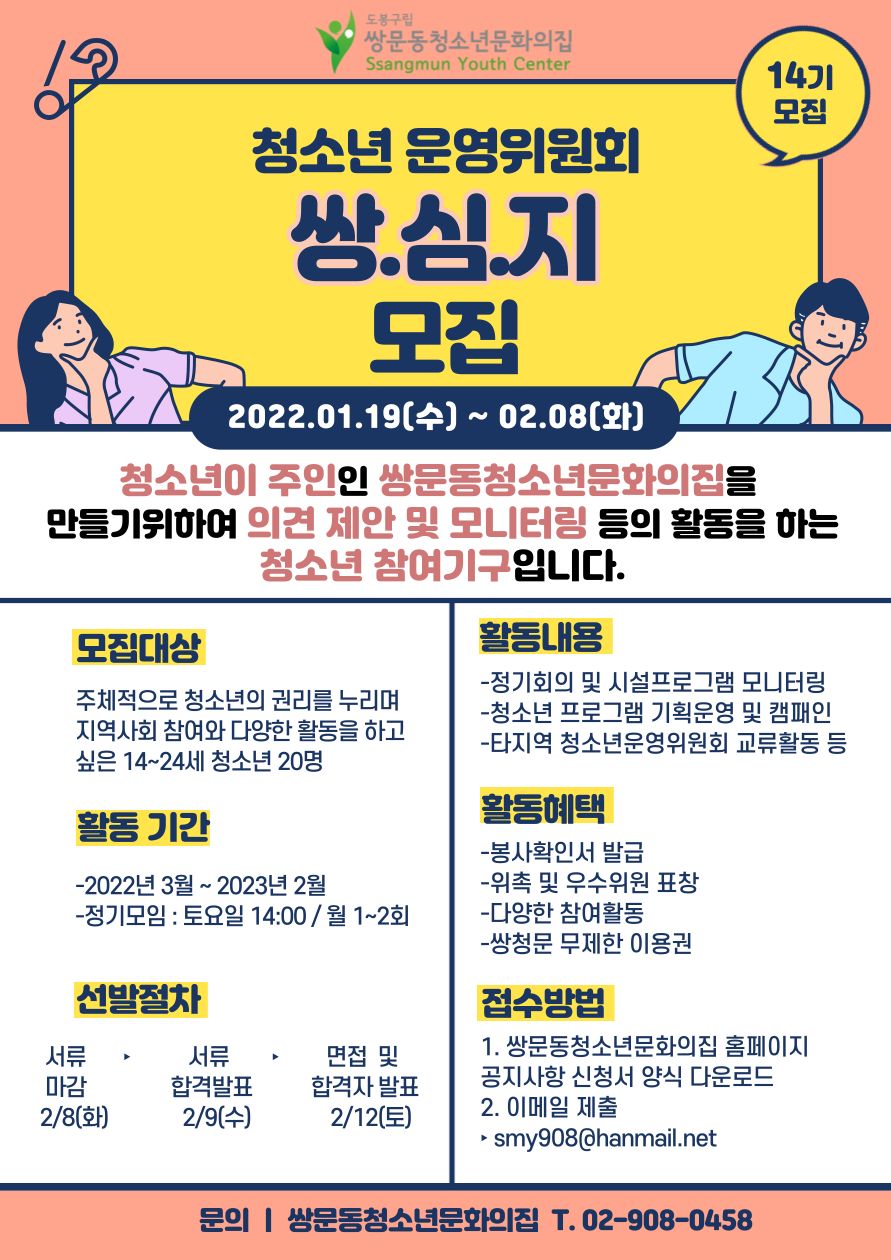 [청소년운영위원회 "쌍.심.지"] 14기 위원 모집♥