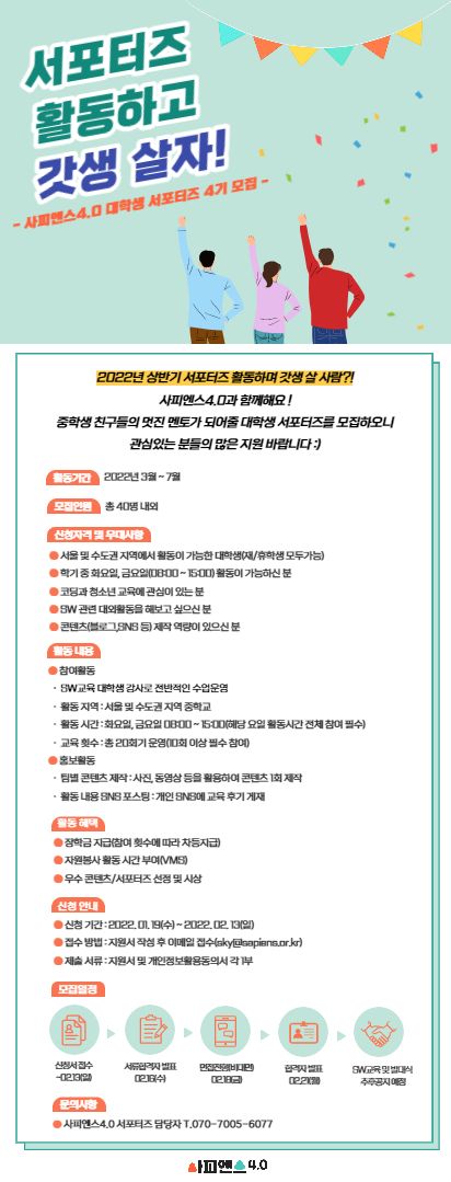 - 사피엔스4.0 대학생 서포터즈 담당자 T.070-7005-6077
