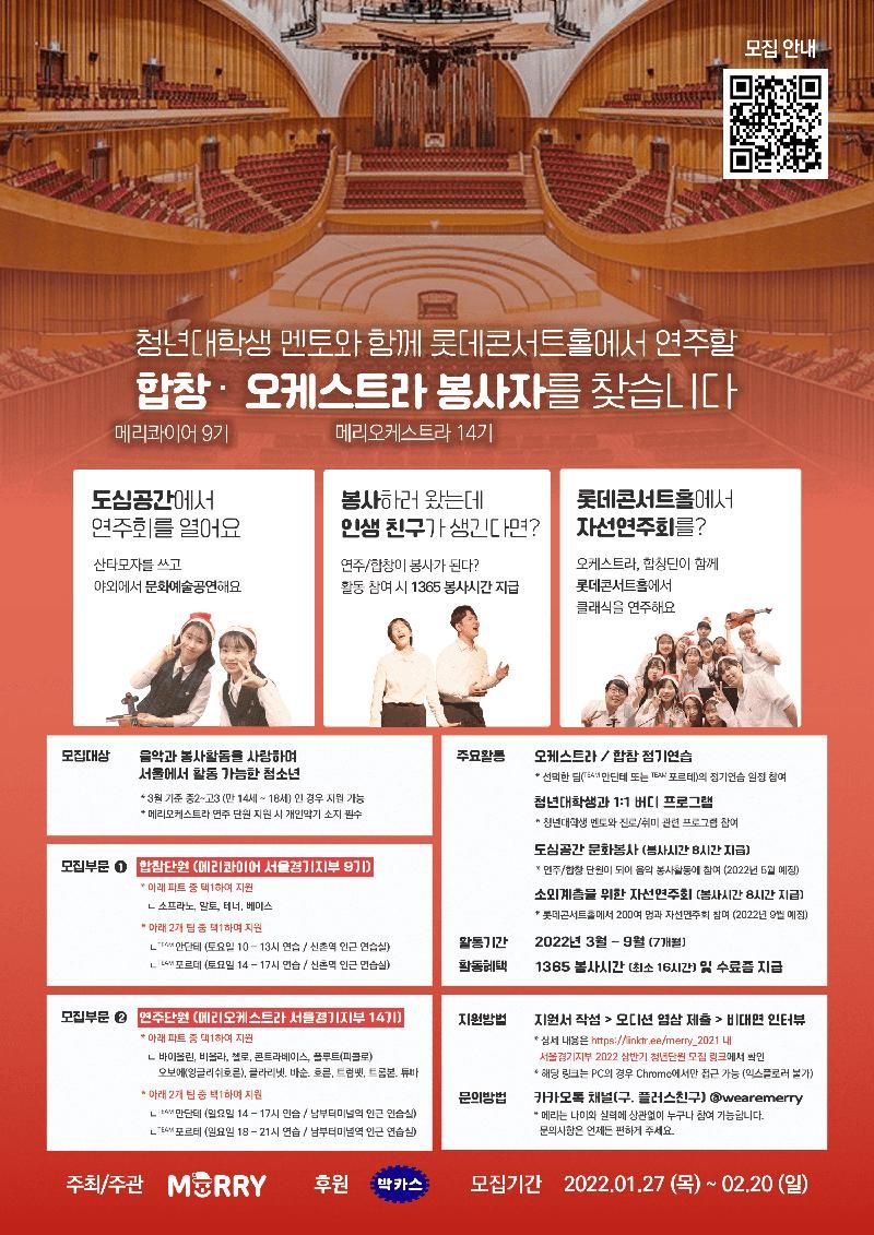 2022 상반기 📣 롯데콘서트홀 자선연주회에 함께 할 청소년 연주/합창 단원을 모집합니다.