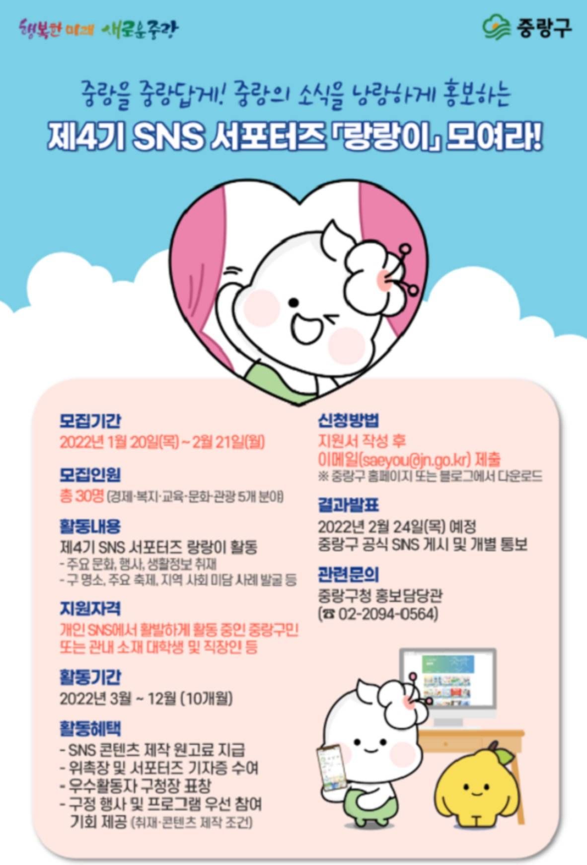 [제4기 중랑 SNS 서포터즈 랑랑이 모집]
