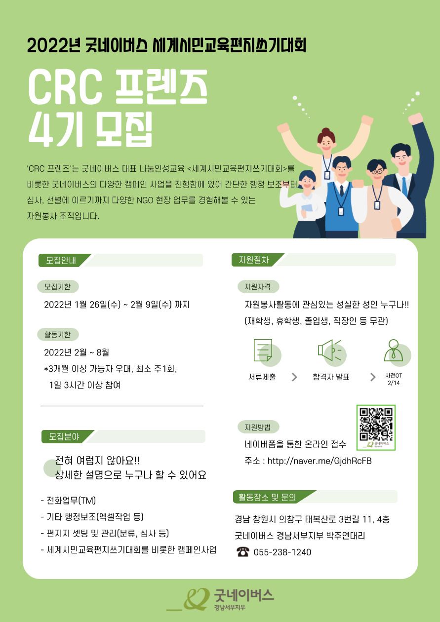 2022년 굿네이버스 경남서부지부 세계시민교육편지쓰기대회 CRC프렌즈(자원봉사자) 4기를 모집합니다