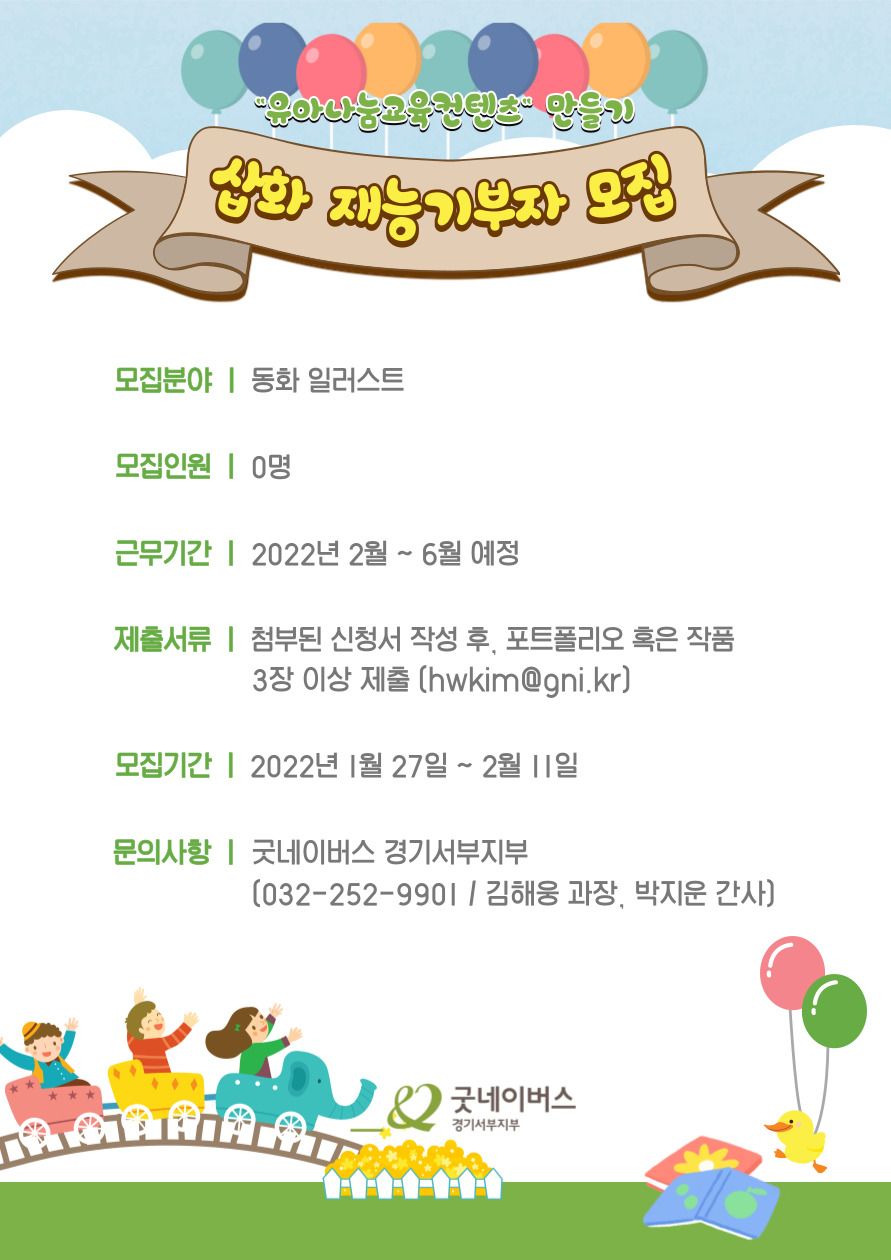 굿네이버스 경기서부지부에서 유아나눔교육컨텐츠제작 삽화 재능기부를 해주실 일러스트레이터 작가님을 모집합니다