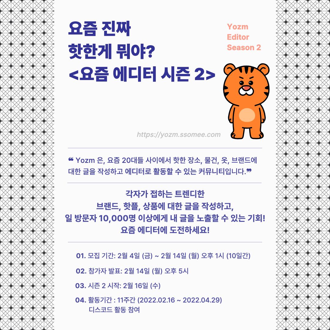 ❝ Yozm 은, 요즘 20대들 사이에서 핫한 장소, 물건, 옷, 브랜드에 대한 글을 작성하고 에디터로 활동할 수 있는 커뮤니티입니다.❞