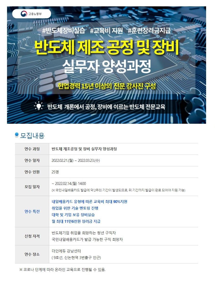 - 반도체 제조 공정 및 장비 실무자 양성과정
