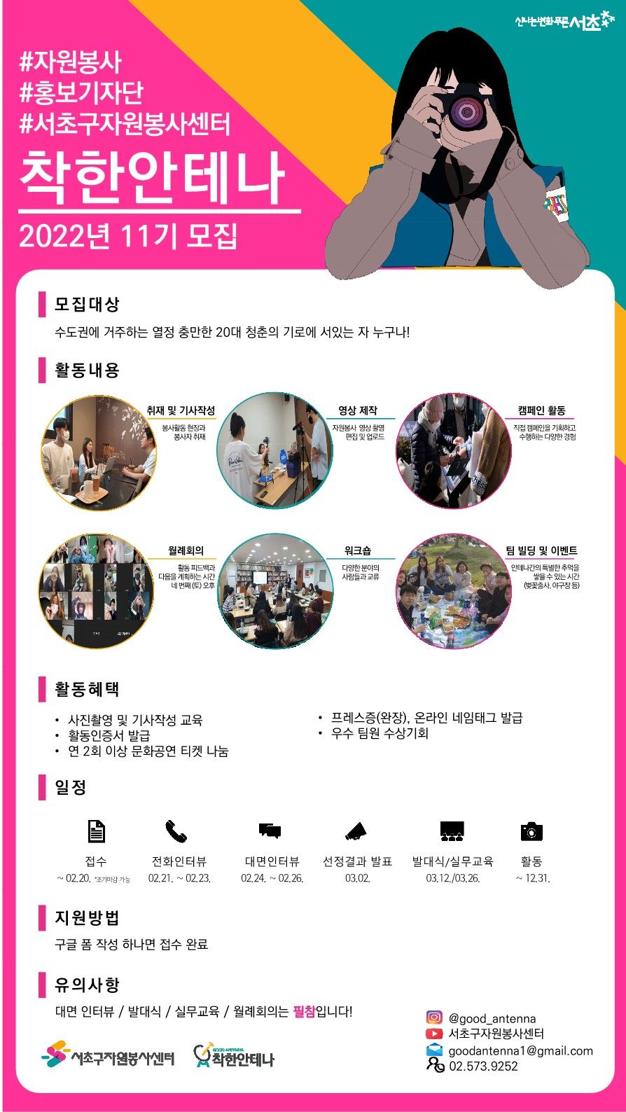 ◆ 문의. 서초구자원봉사센터 T. 02-573-9252 H. www.seochov.or.kr