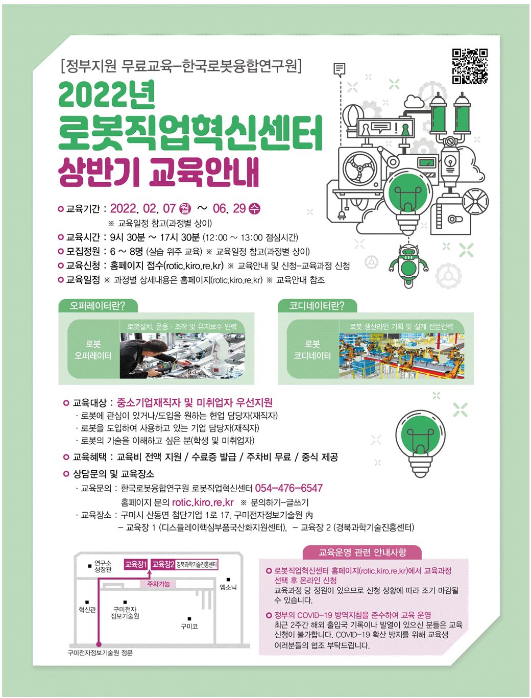 - 구미시 산동면 첨단기업 1로 17, 구미전자정보기술원 內 로봇직업혁신센터 교육장