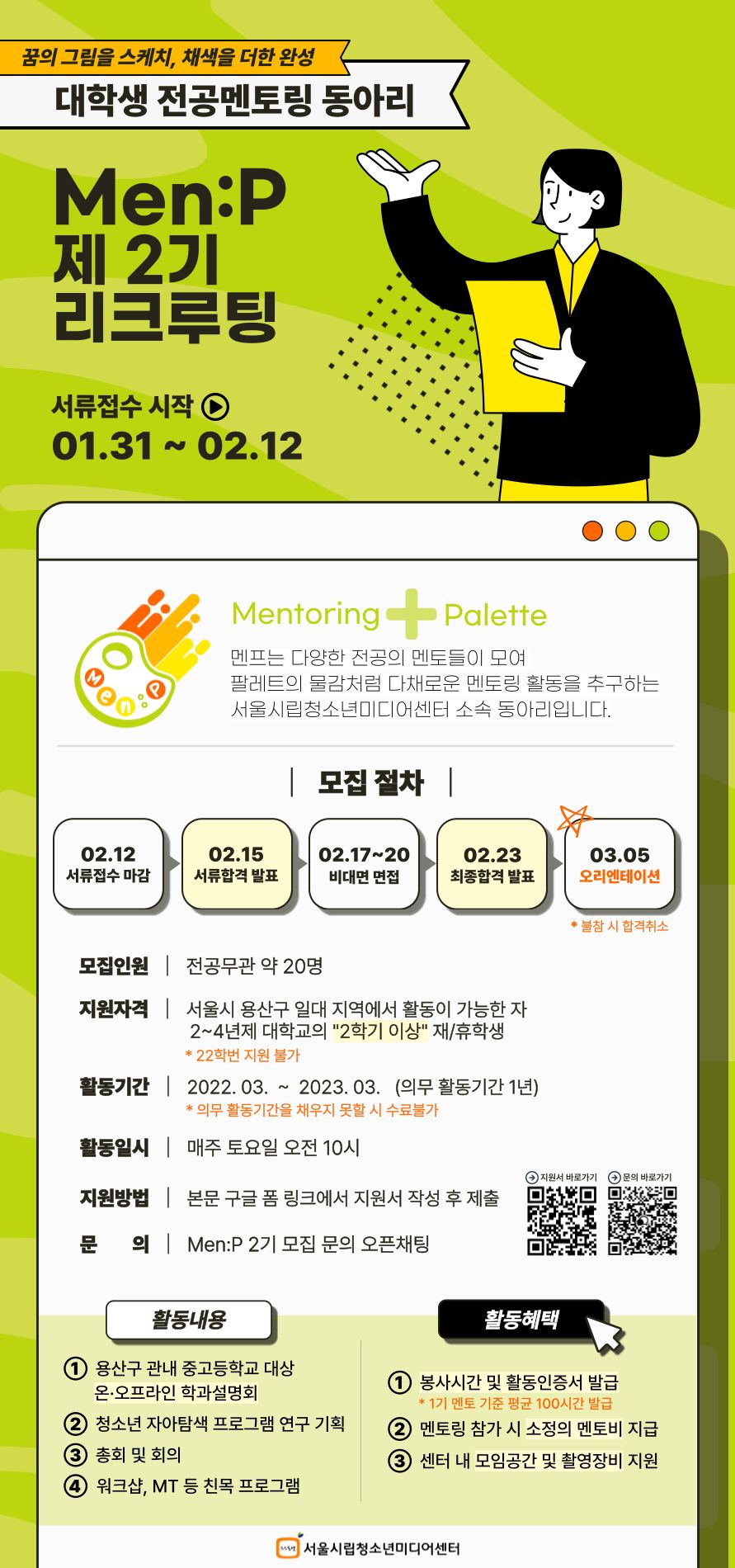 🌼2022 Men:P 전공멘토링 제2기 대학생 멘토 모집🌼
