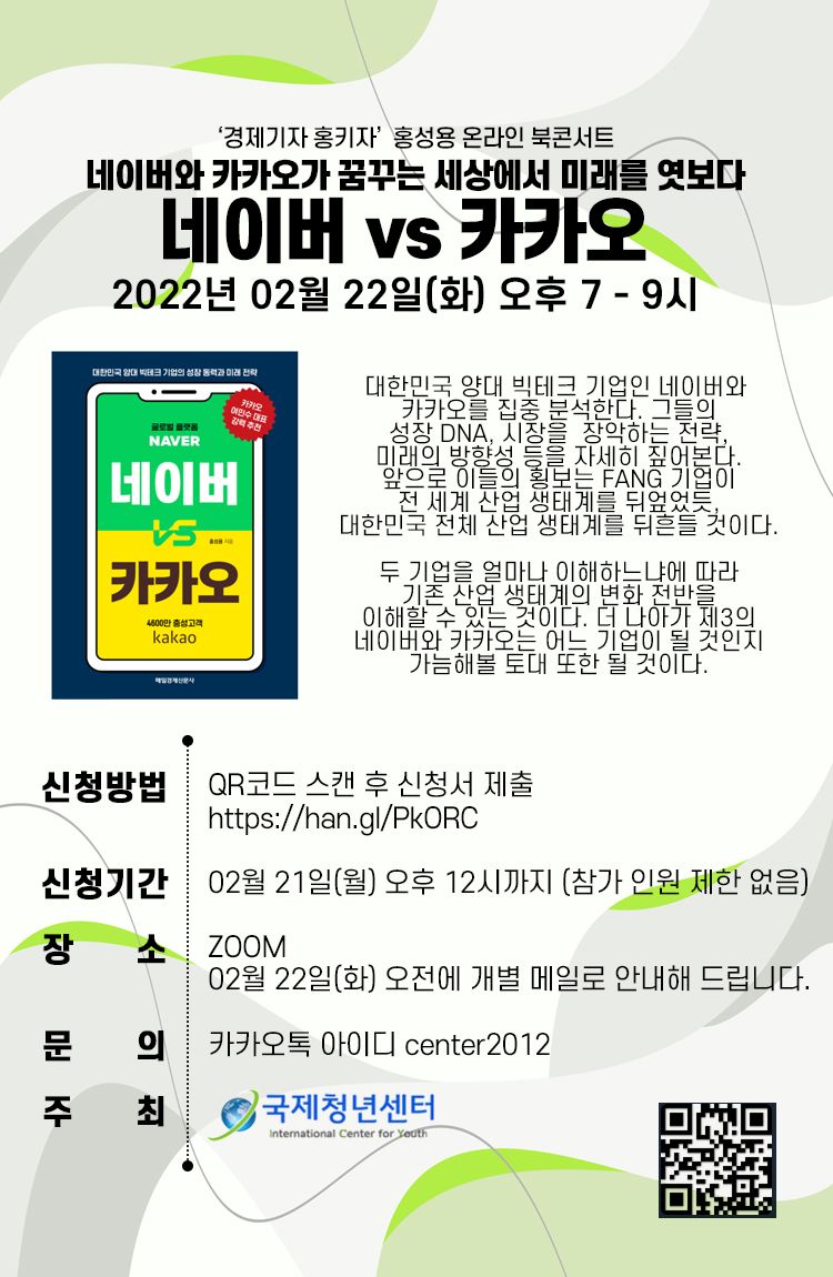 '경제기자 홍키자' 홍성용 작가님의 『네이버 vs 카카오』북콘서트를 진행합니다.