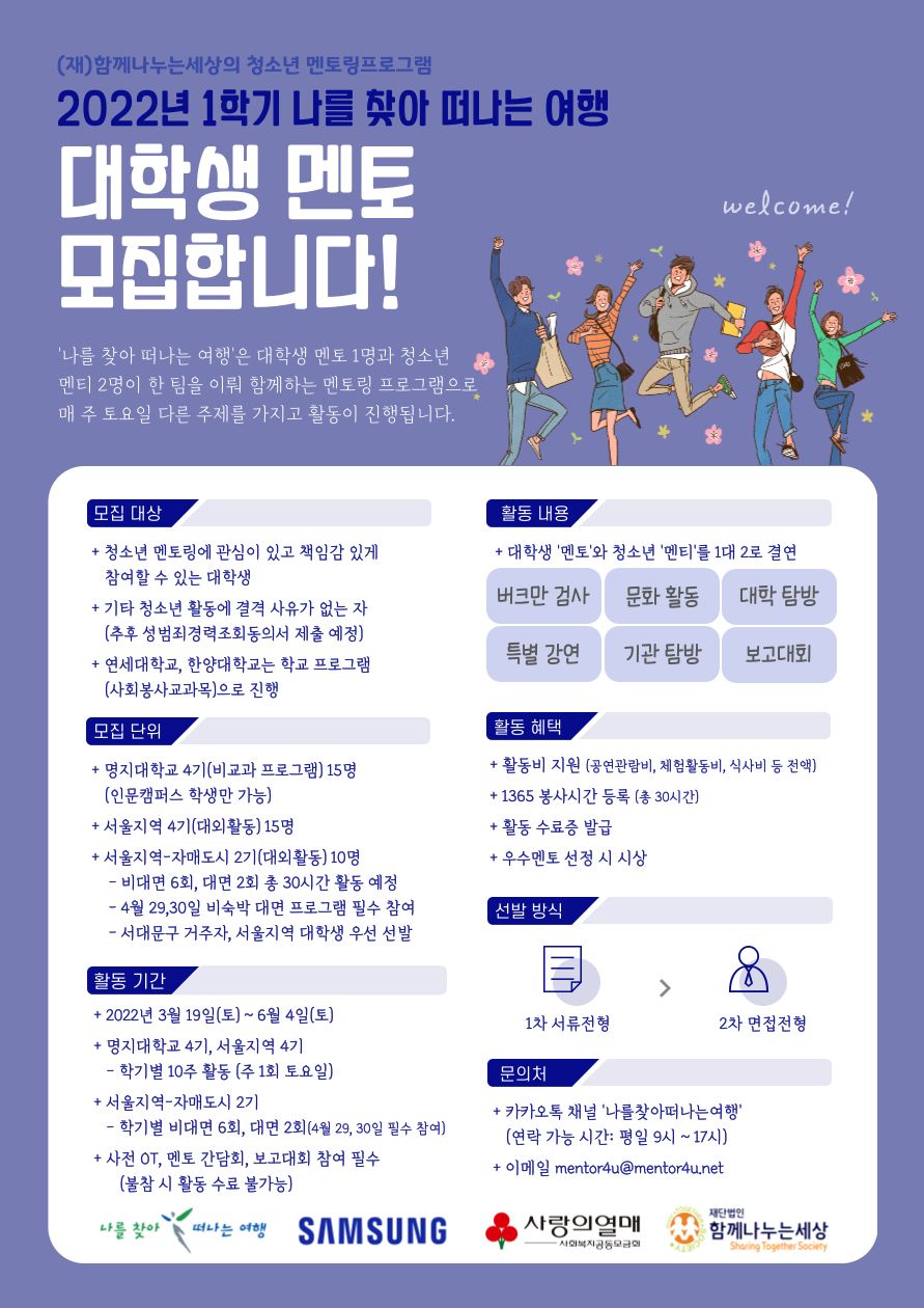 - 청소년 멘토링에 관심이 있고 책임감 있게 참여할 수 있는 대학생
