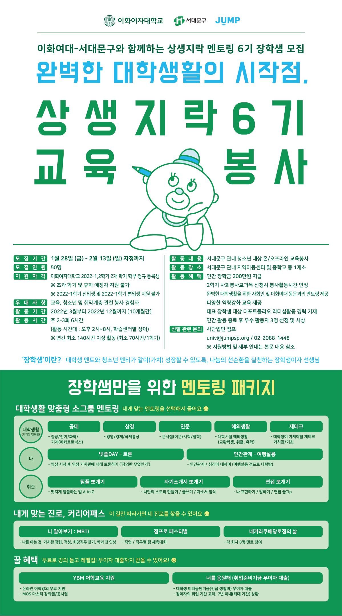 ○ 주최사 / 활동명┃이화여자대학교-서대문구-사단법인 점프가 함께하는 <상생지락 멘토링 6기>