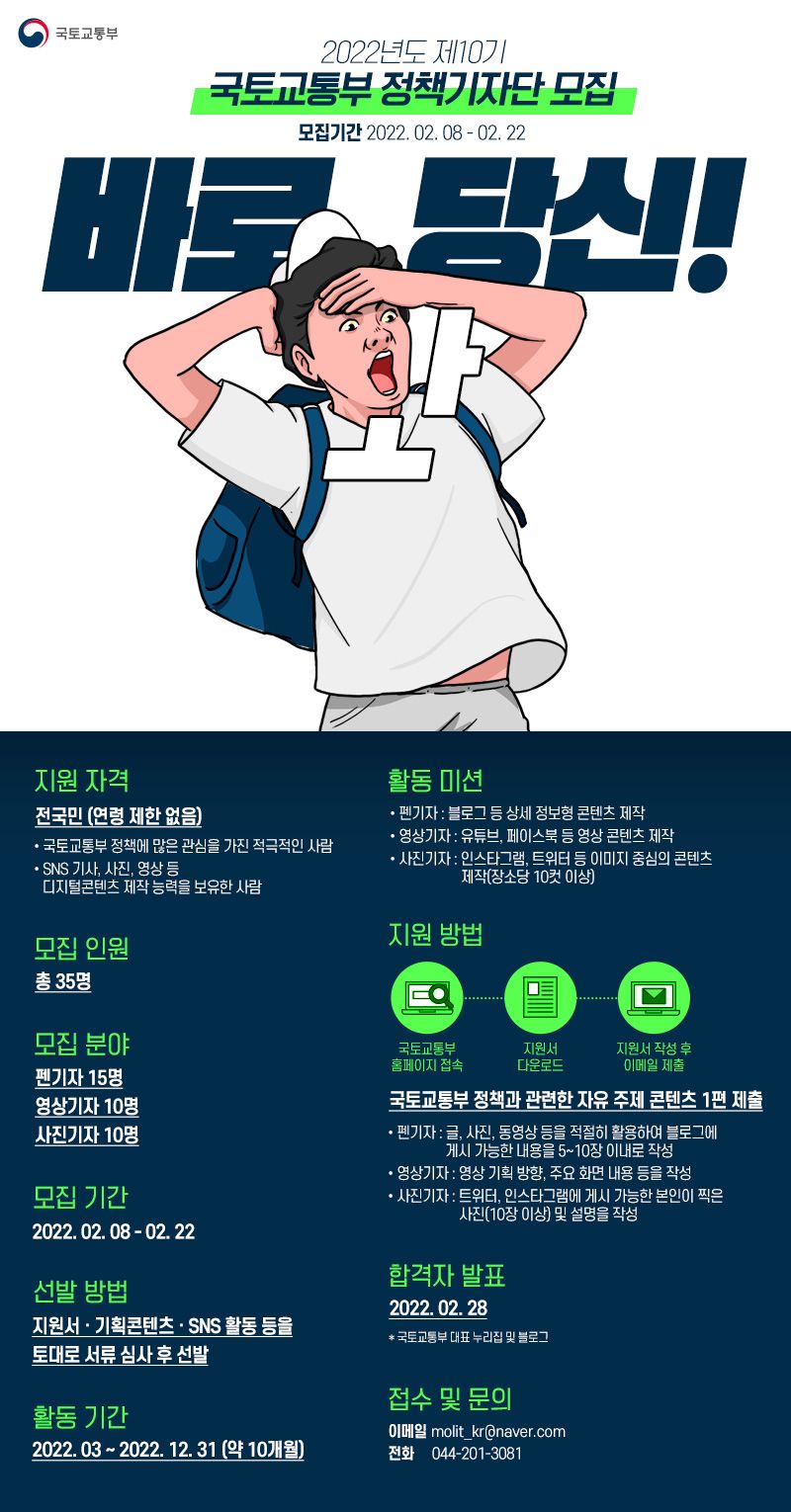 2022년도 제10기 국토교통부 정책기자단을 모집합니다!