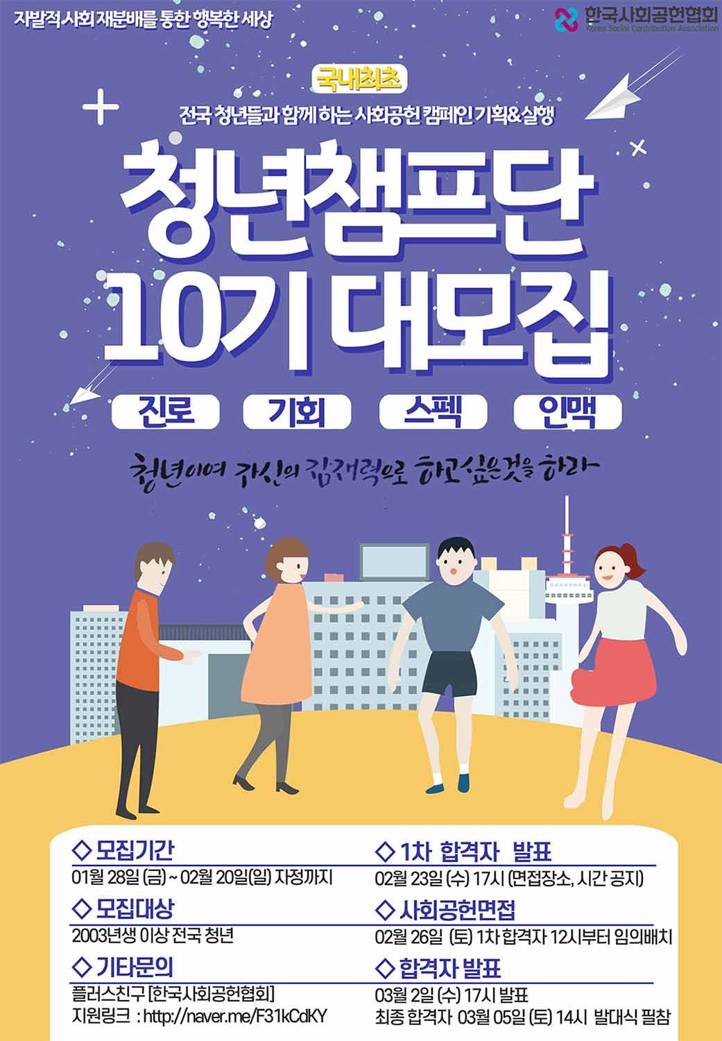 한국사회공헌협회 청년챔프단 10기에 관심을 가져주셔서 감사하며,