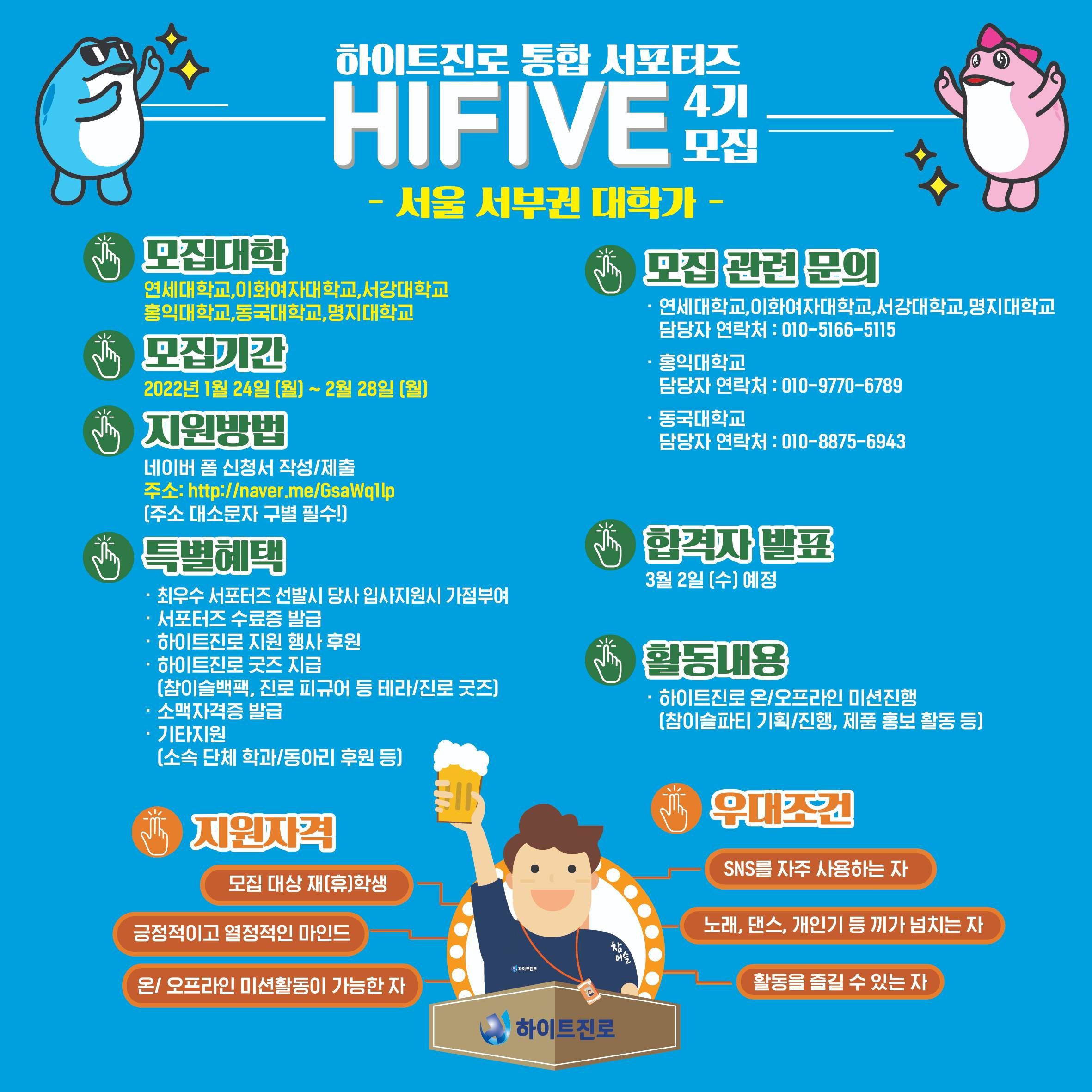 <하이트진로 통합서포터즈 '하이파이브' 4기 모집>