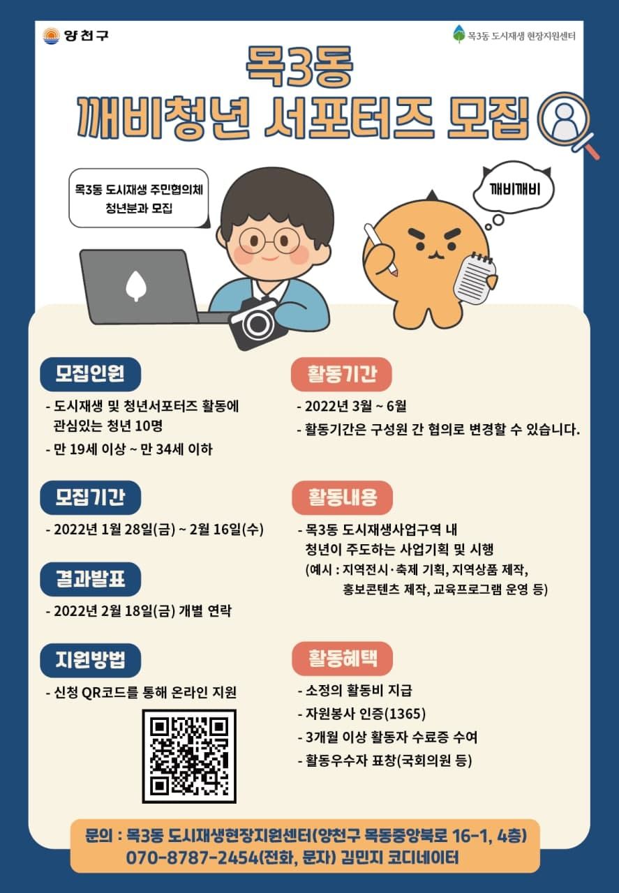- 목3동 도시재생 현장지원센터(양천구 목동중앙북로 16-1, 4층)