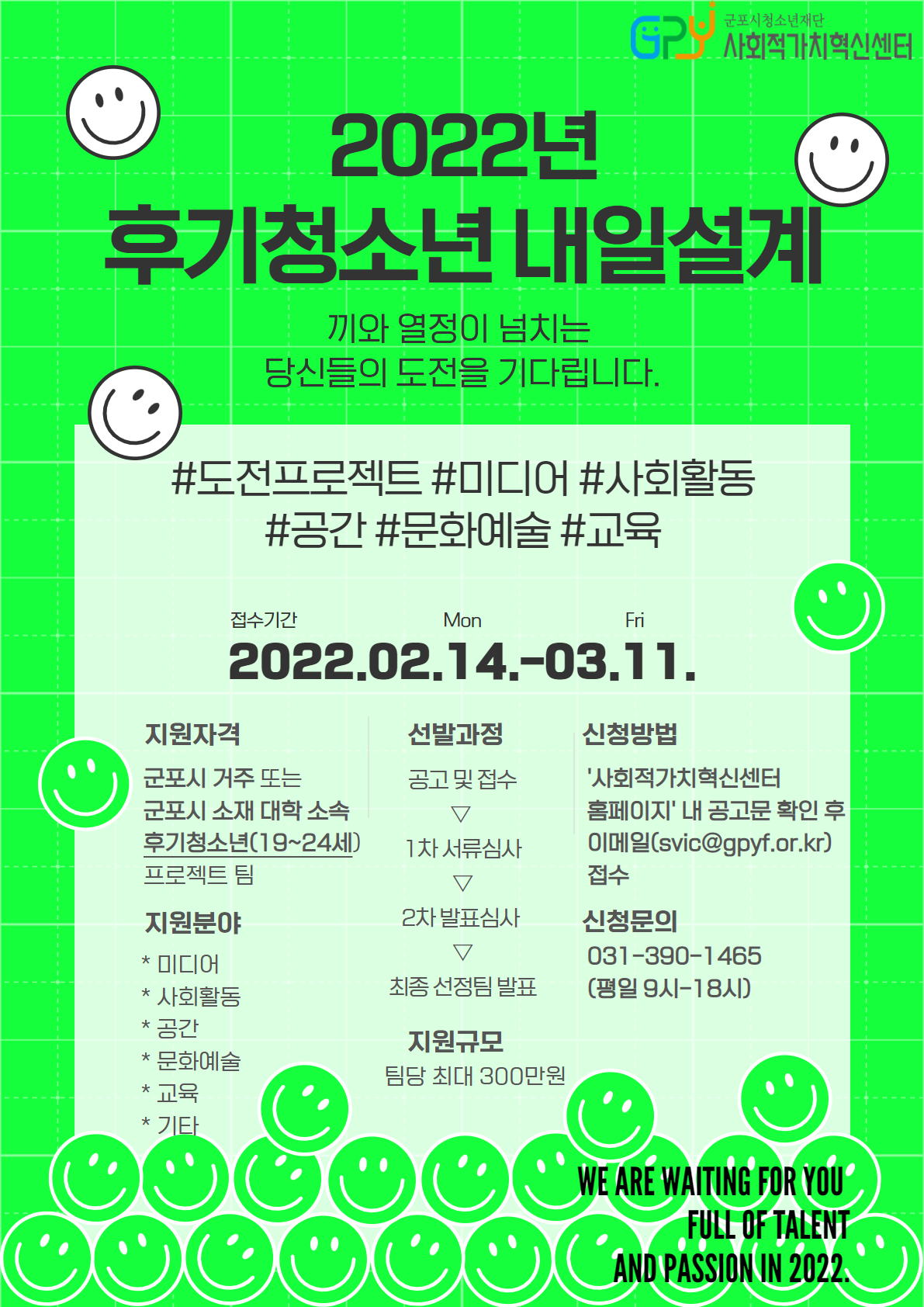 ✨2022 군포시청소년재단 사회적가치혁신센터 '후기청소년 내일설계' 참가팀 모집✨