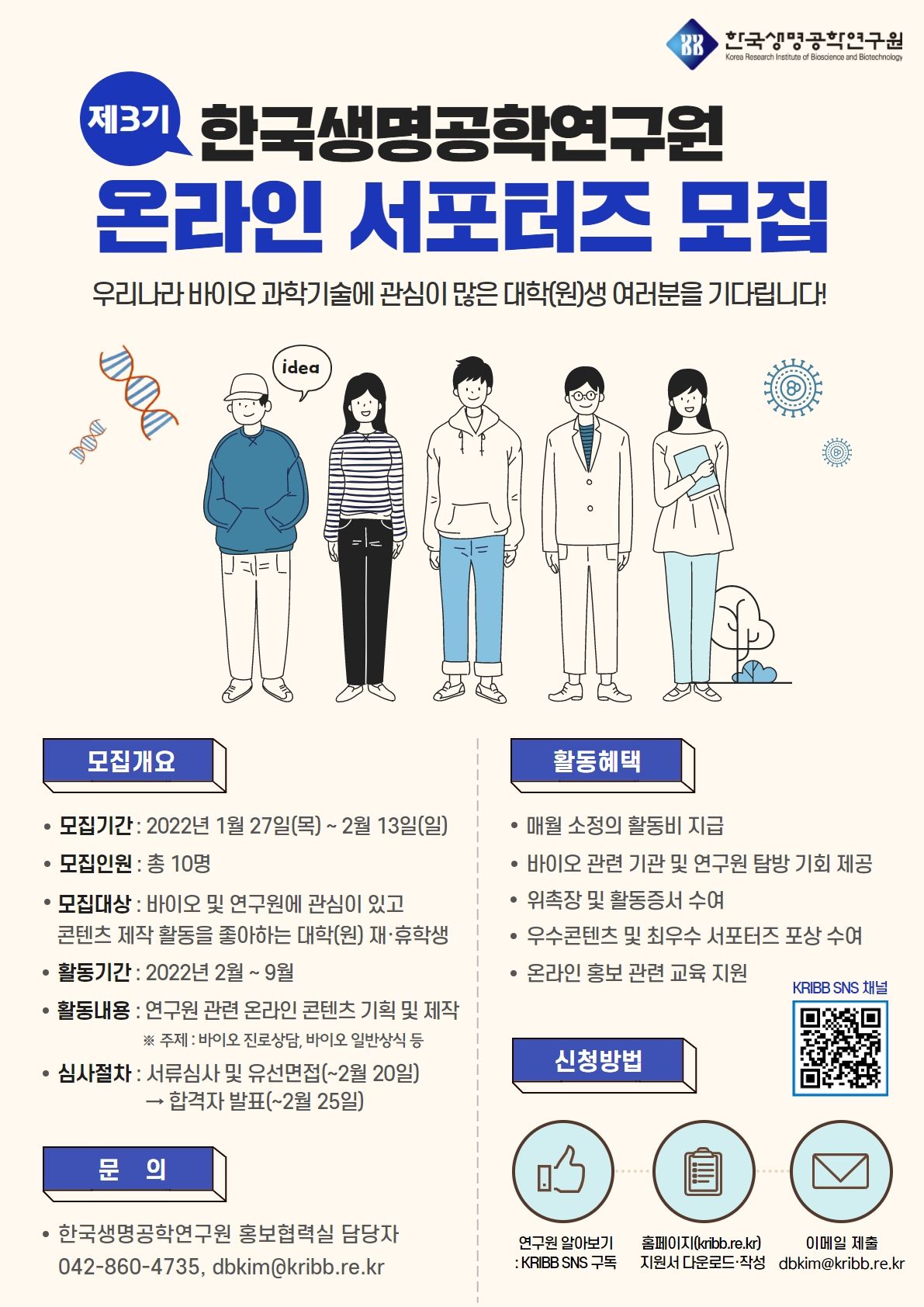 한국생명공학연구원 제3기 온라인 서포터즈 모집