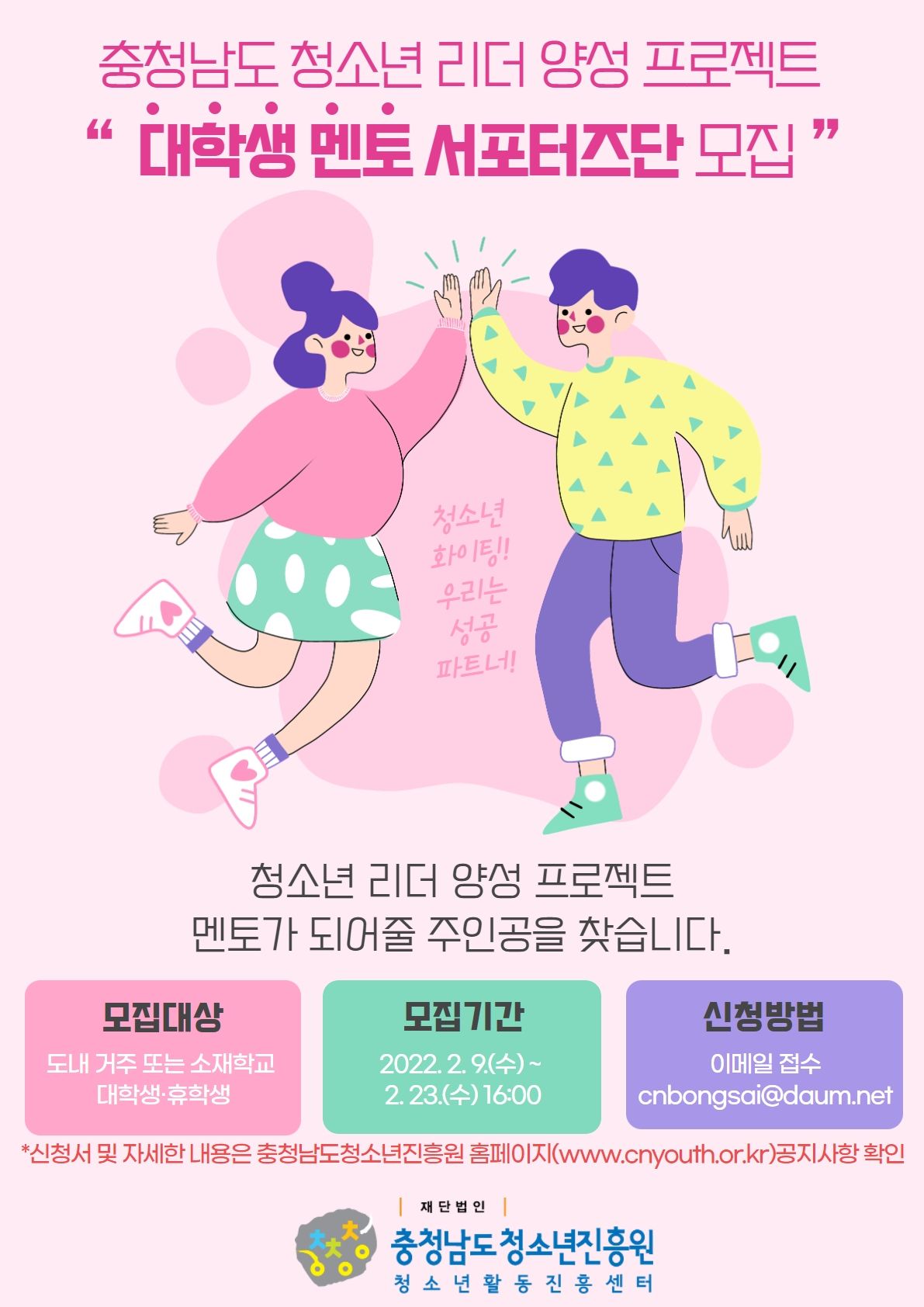 2022 충청남도 청소년 리더 양성 프로젝트에 대학생 멘토 서포터즈단 LINC를 모집합니다.