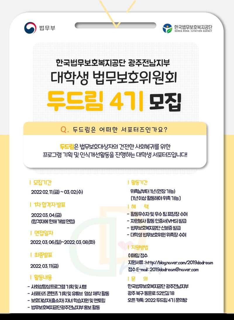 안녕하세요! 법무보호복지공단 광주전남지부 대학생위원회 두드림(Do-Dream)입니다!!