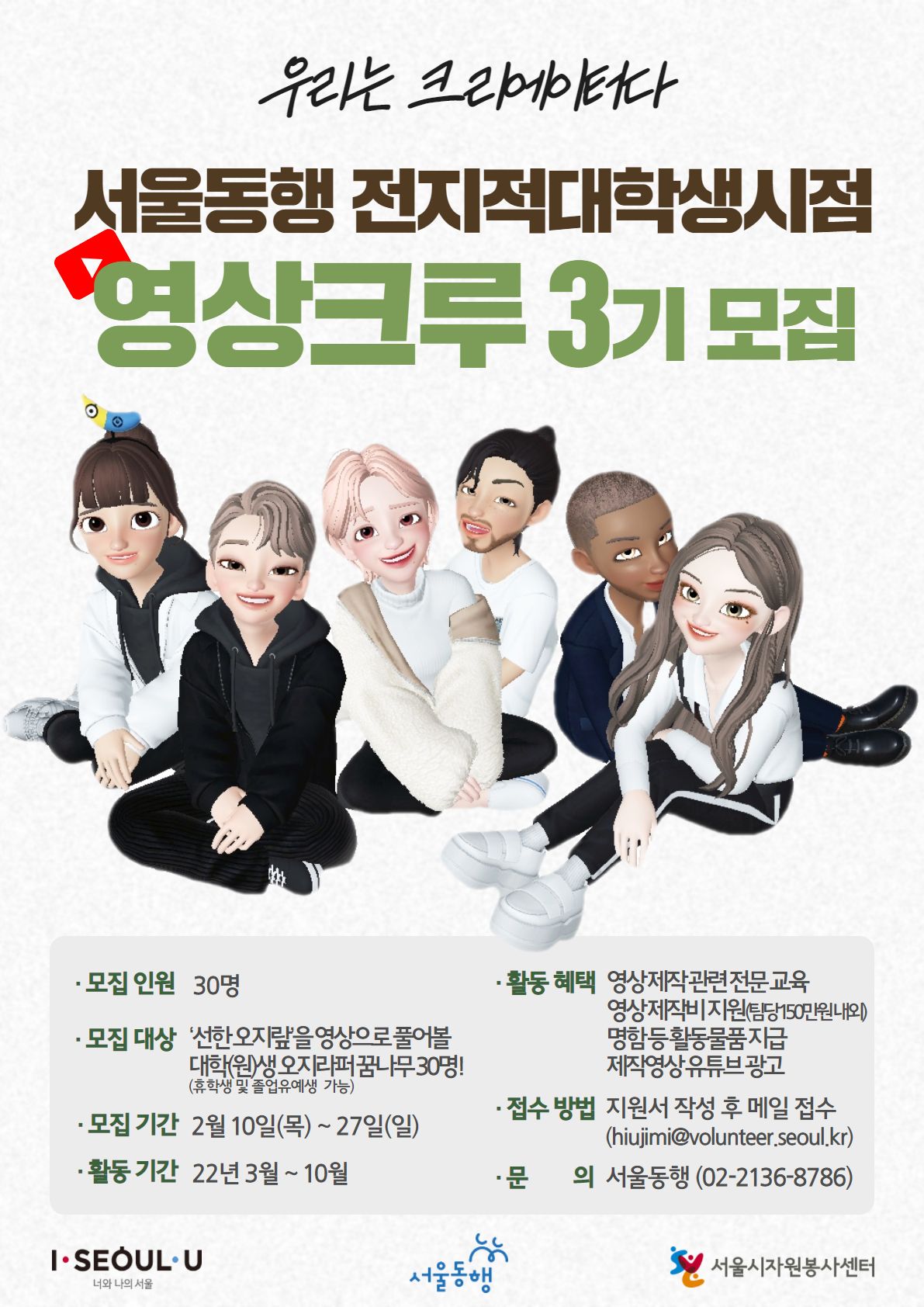 - 서울동행 봉사자, 영상 관련 능력자, 유튜브 SNS 인플루언서 우대