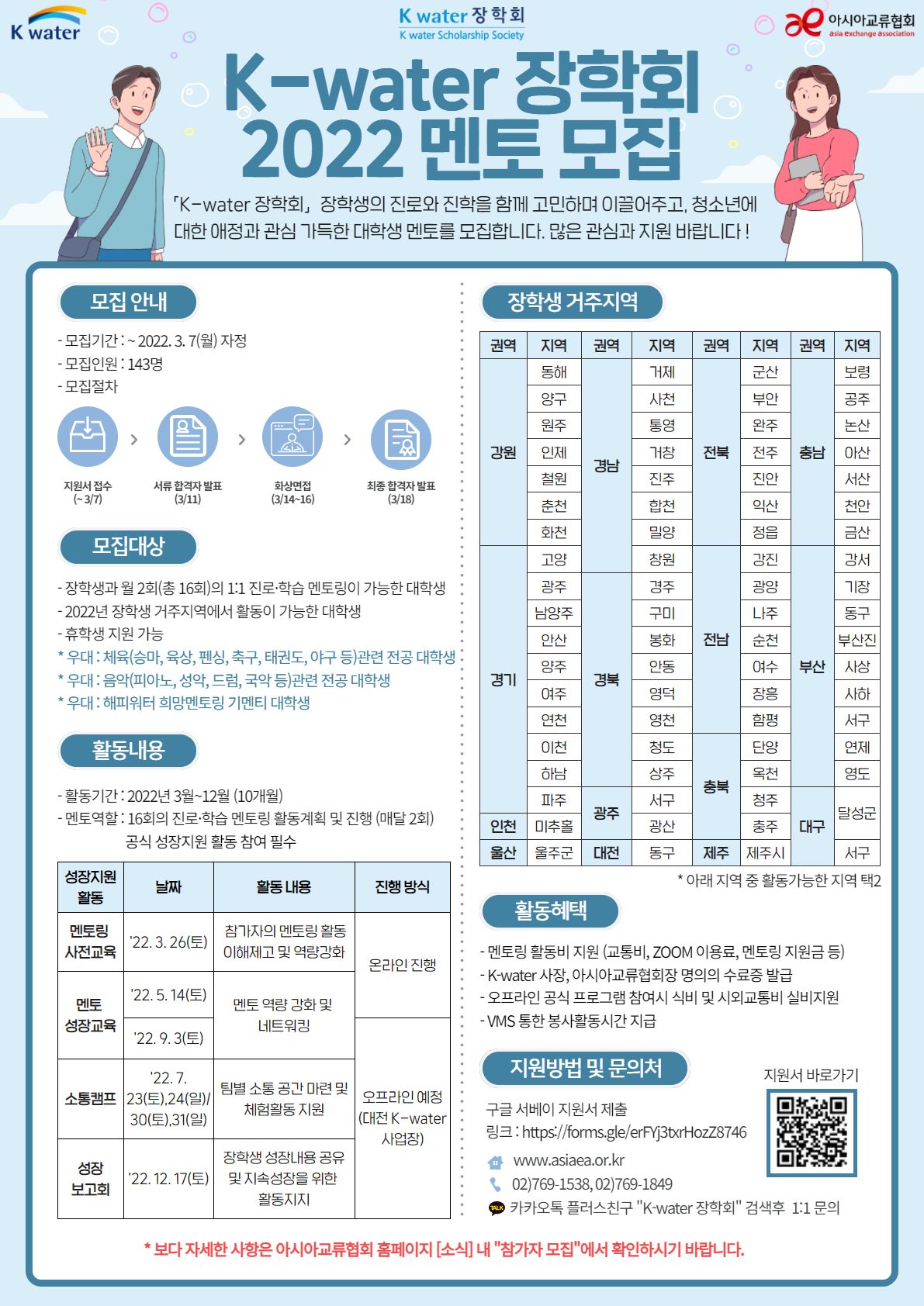 🌈「K-water 장학회」에 함께할 ‘2022 대학생 멘토’를 모집합니다🌈