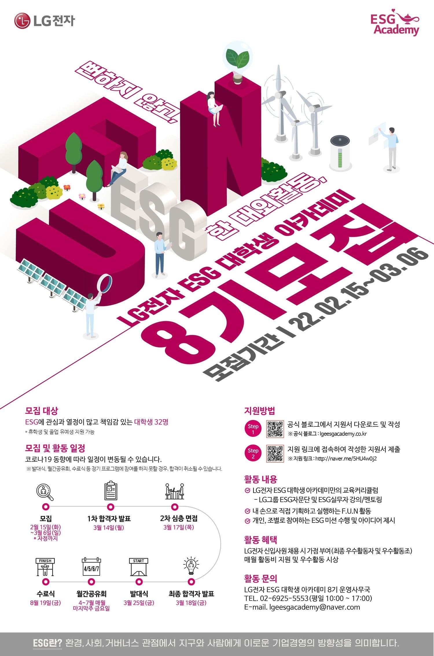 - LG전자 ESG 대학생 아카데미 8기 운영사무국 : 02-6925-5553 / lgeesgacademy@naver.com