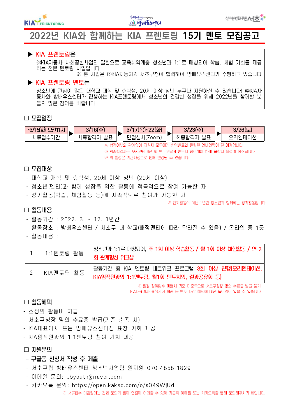 (주)KIA자동차, 서초구청/방배유스센터, 반포종합사회복지관, 우면종합사회복지관